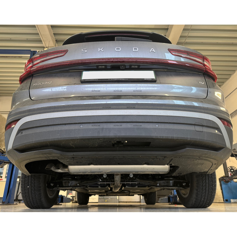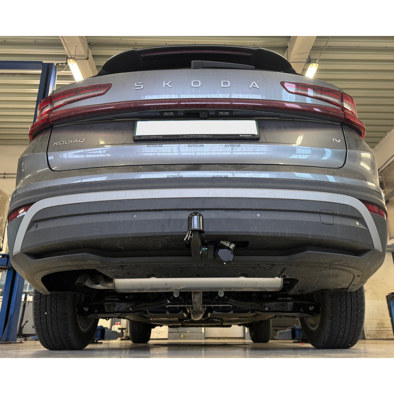Pro majitele nové Škody Kodiaq druhé generace (model od r.v. 02/2024), kteří vyžadují nekompromisní funkčnost při zachování 100% čistého designu svého SUV, je tento vertikální odnímatelný bajonet od výrobce AUTO-HAK tou nejlepší volbou. Díky svislému systému upínání "click-clack" zůstává po odejmutí tažné koule veškerý mechanismus i sklopná zásuvka zcela skryta za hranou nárazníku. Váš nový Kodiaq si tak zachová své robustní a elegantní linie bez jakéhokoliv viditelného zásahu. Pokud vás zajímá srovnání systémů, přečtěte si: vyplatí se pevné nebo odnímatelné tažné zařízení?