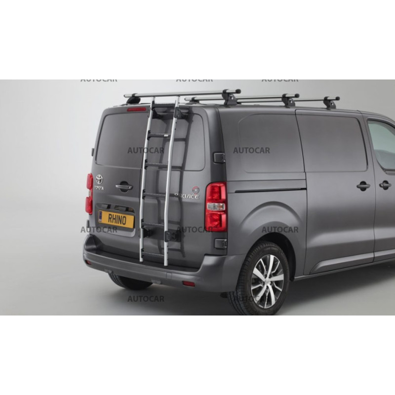 Rhino 7 stupňový hliníkový žebřík spojuje sílu a styl, aby poskytl jeden z nejestetičtějších produktů pro přístup ke střeše, které jsou dostupné pro komerční vozidla. Využíváním velmi robustních hliníkových madel a skleněných nylonových příček nabízí Aluminium Ladder mimořádně lehké řešení. Každý model je více než 50% lehčí než staré ocelové žebříky Rhino a byl důkladně testován na bezpečnou pracovní zátěž 120 kg na žebřík. Není vhodný pro dodávky s oknem na zadních dveřích.