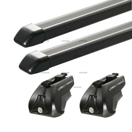 Ocelový nosič s nosnost 75 kg v černé barvě. Praktický a cenově dostupný systém, pevná konstrukce, plně uzamykatelný, určený pro upevnění na klasické střešní ližiny.
