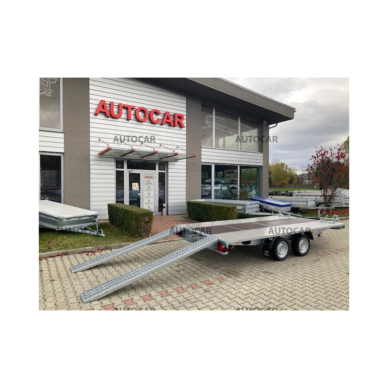 Dvounápravový nákladný vozík na přepravu automobilů s kolami uloženými pod úložnou plochou.Konštrukciu tvoří robustná žárově zinkovaná zvarovaná ocelová konstrukce , která zaručuje dlhoročnú životnost. přívěs má záruk 2 roky a je konštruovaný na rychlost 140 km/h.