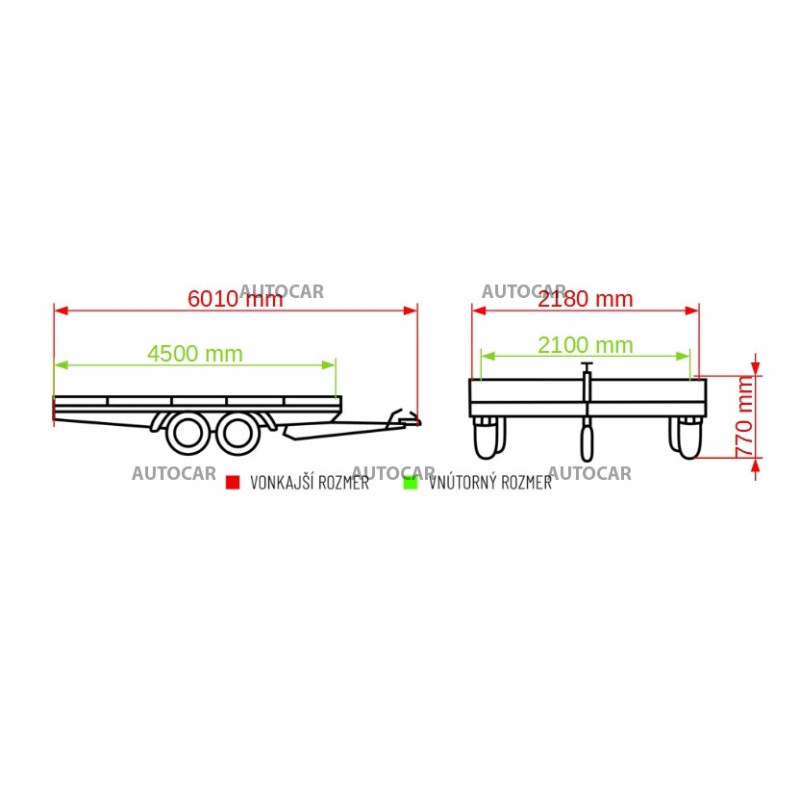 Dvounápravový nákladný vozík na přepravu automobilů s kolami uloženými pod úložnou plochou.Konštrukciu tvoří robustná žárově zinkovaná zvarovaná ocelová konstrukce , korá zaručuje dlhoročnú životnost. přívěs je konštruovaný na rychlost 100 km/h. V základní výbavě je Rezervní kolo s držákam, Nájezdy, opěrné kolo, zakladacie Klíny, naviják s lanem.