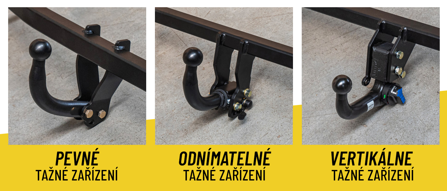 Tažné zařízení lze sejmout a uložit do kufru – auto tak vypadá jako bez tažného. Rozlišujeme dva systémy:
