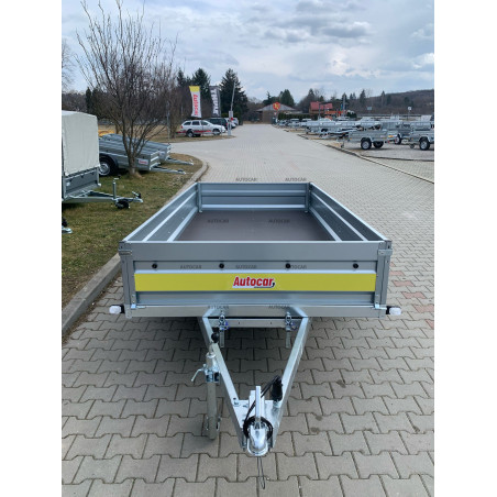 Dvounápravový nebrzděný přívěsný vozík s robustním svařovaný rámem výšky 8cm příčným vyztužením představuje spolehlivé řešení pro přepravu každého nákladu. Jeho rám U profilu a oje C profilu jsou vyrobeny z materiálu tlustého až 2,5mm. Přívěs má dvě nápravy s nosnost 750kg a přívěsový kloub s nosnost 1300kg. Jeho široká ložná plocha o rozměrech 3040 x 1560 a výšce bočnice 390mm, hlavní je však tloušťka bočnice až 1mm , které zaručují pevnost a odolnost. Tento vozík je vybaven voděodolnou překližkovou podlahou s podlahovými oky. Přívěs má také přední otevírací čelo a opěrné kolečko v ceně.