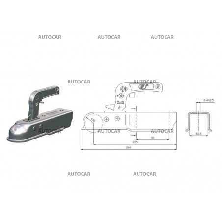 Přívěsný kloub do 1300 kg na oje čtvercového průřezu s rozměrem 50 mm, max. vertikální zatížení 100 kg