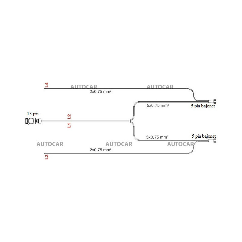 délka 4,9m, 13-pólová zásuvky, 5 pólové zakončení