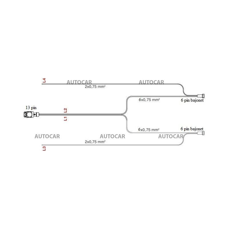 délka 9,7m, 13-pólová zásuvky, 6- pólové zakončení