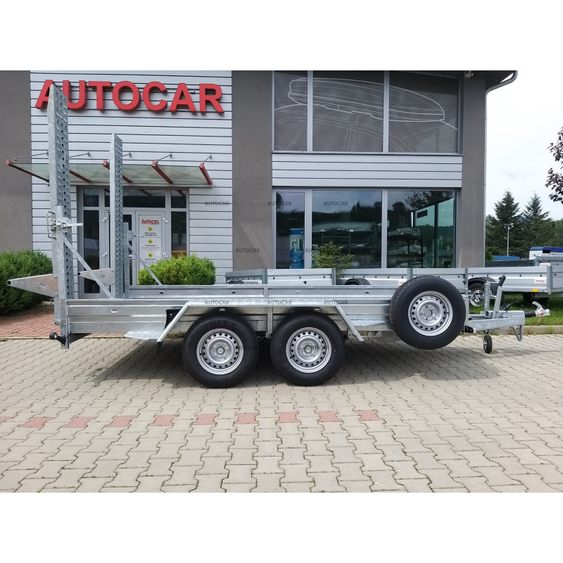 Dvounápravový brzděný přívěsný vozík na přepravu stavebních strojů s koly umístěnými vedle ložné plochy. Jednoduché naložení stroje je zajištěno pomocí nájezdových lyžin. Železné bočnice přívěsu jsou svařeny přímo s rámem přívěsu, což je činí velmi odolnými. Konstrukci tvoří robustní žárově zinkovaná svařovaná ocelová konstrukce, která zaručuje dlouhou životnost. V základní výbavě má: 8x úchyt na ukotvení stroje, podlaha z vodovzdorné překližky, opěrné kolečko. Přívěs má záruku 2 roky a je konstruován na rychlost 140 km/h.