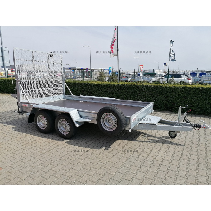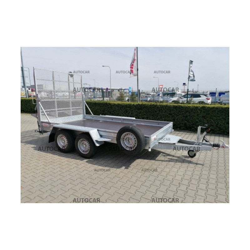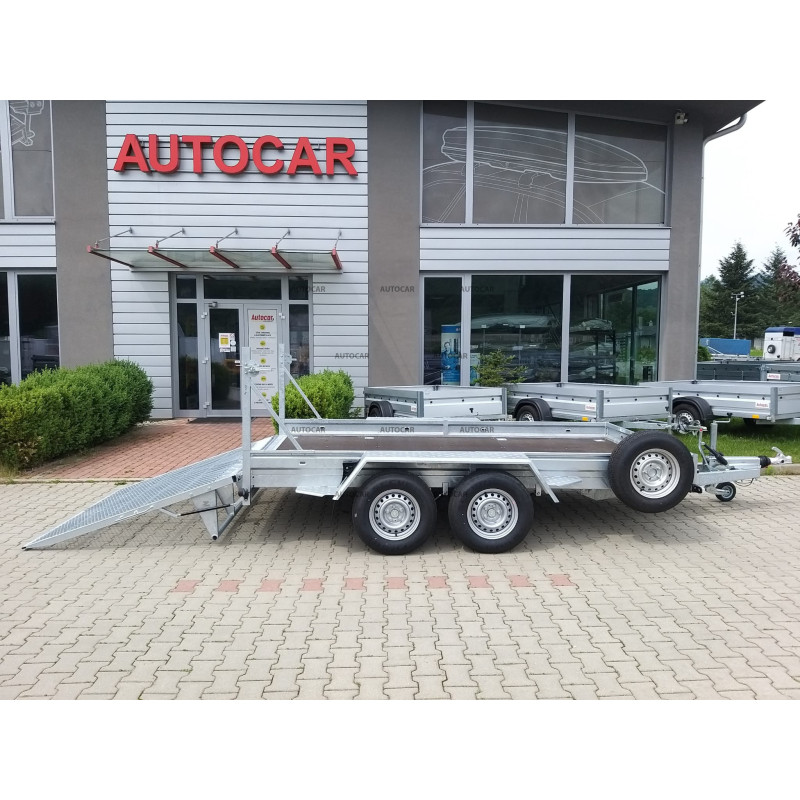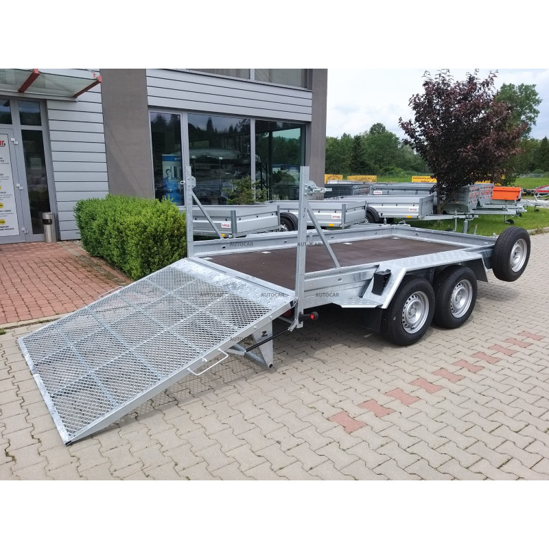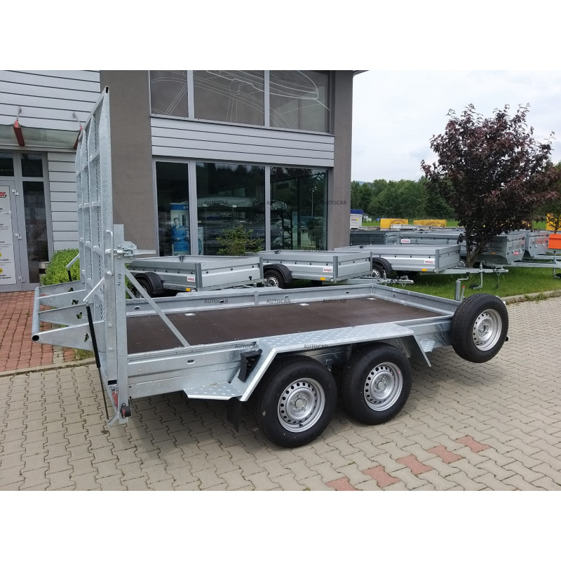 Dvounápravový brzděný přívěsný vozík na přepravu stavebních strojů s koly umístěnými vedle ložné plochy. Tento přívěs patří do kategorie PROFI. Snadné naložení stroje je zajištěno pomocí nájezdové rampy. Železné bočnice přívěsu jsou svařeny přímo s rámem přívěsu, což je činí velmi odolnými. Konstrukci tvoří robustní žárově zinkovaná svařovaná ocelová konstrukce, která zaručuje dlouhou životnost. V základní výbavě má: 8x úchyt na ukotvení stroje, podlaha z vodovzdorné překližky, opěrné kolečko. Přívěs má záruku 2 roky a je konstruován na rychlost 140 km/h.
