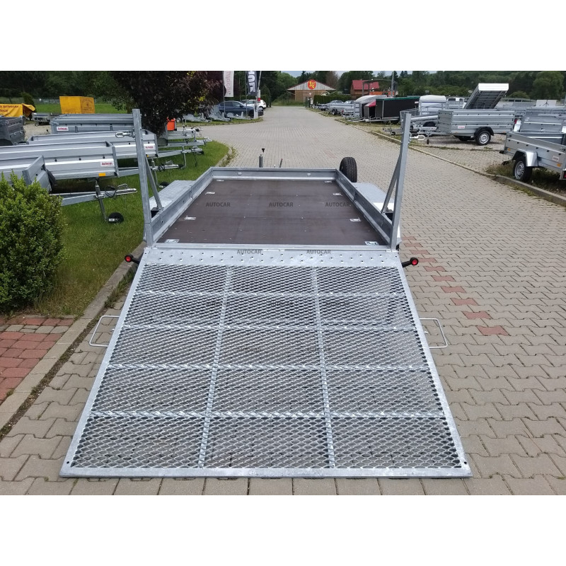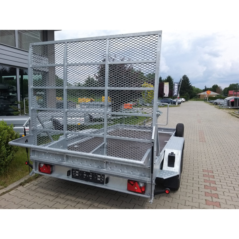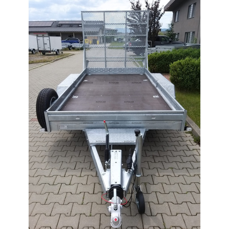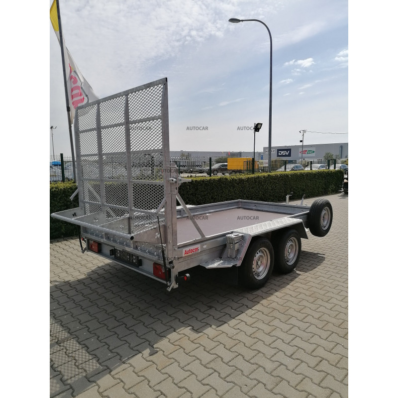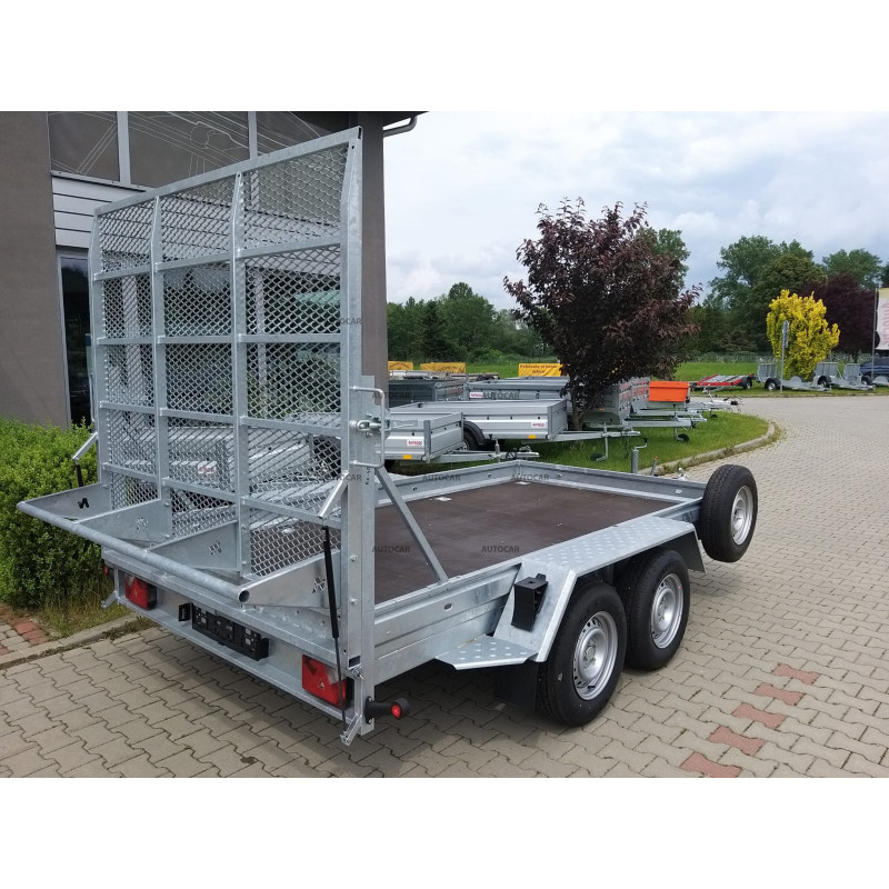 Dvounápravový brzděný přívěsný vozík na přepravu stavebních strojů s koly umístěnými vedle ložné plochy. Tento přívěs patří do kategorie PROFI. Snadné naložení stroje je zajištěno pomocí nájezdové rampy. Železné bočnice přívěsu jsou svařeny přímo s rámem přívěsu, což je činí velmi odolnými. Konstrukci tvoří robustní žárově zinkovaná svařovaná ocelová konstrukce, která zaručuje dlouhou životnost. V základní výbavě má: 8x úchyt na ukotvení stroje, podlaha z vodovzdorné překližky, opěrné kolečko. Přívěs má záruku 2 roky a je konstruován na rychlost 140 km/h.