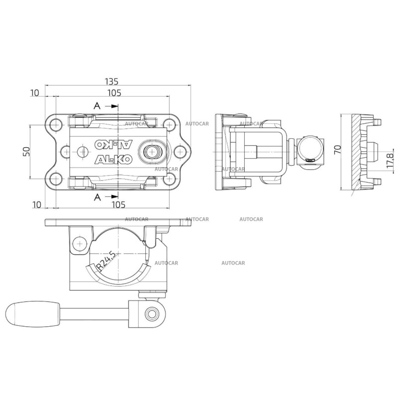 Alko držák opěrných kol, průměr uchycení 48 mm, statická nosnost 300 kg
