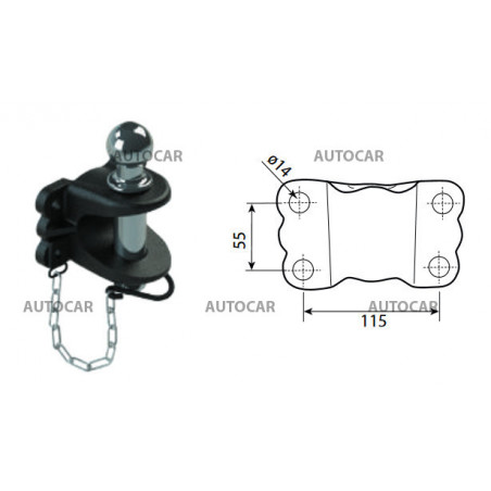 Kouli možno použít na tažné zařízení s upínaním koule čtyřmi šrouby zepředu s roztečí děr 115x55 mm.