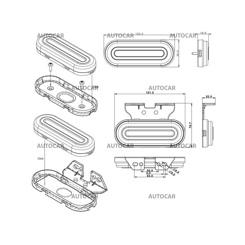 LED poziční světlo FRISTOM - univerzální pro pravou i levou stranu přívěsu s plastovým držákem a kabelem.
