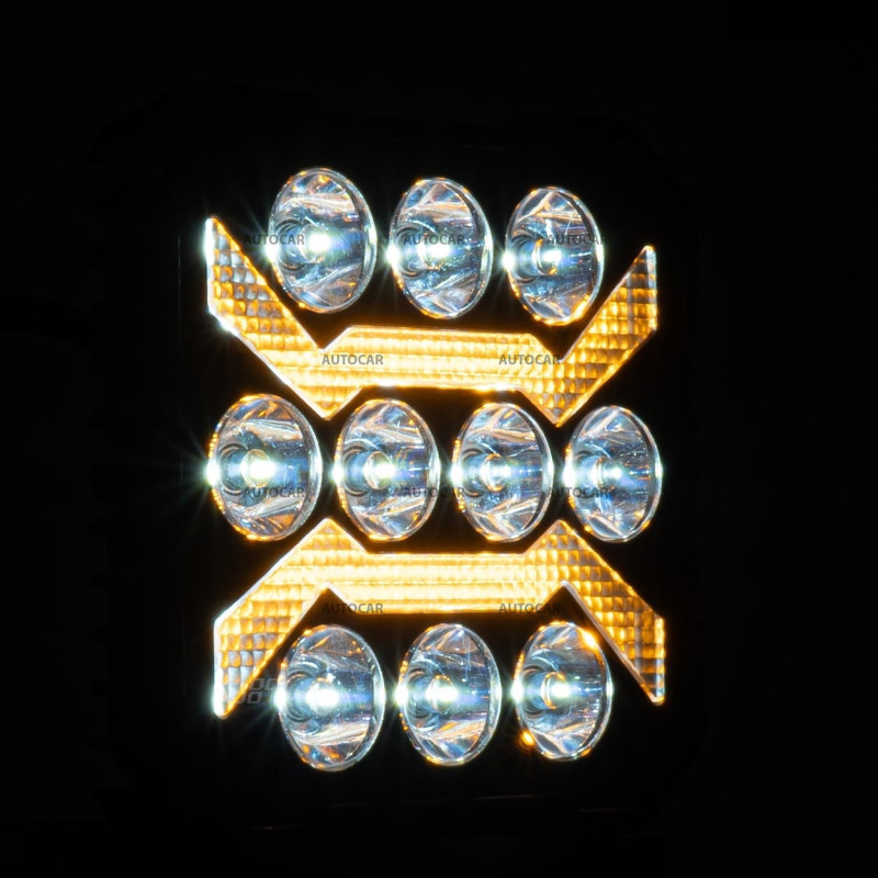 | Tři funkce světla: | dvě bílé a jedna oranžová |