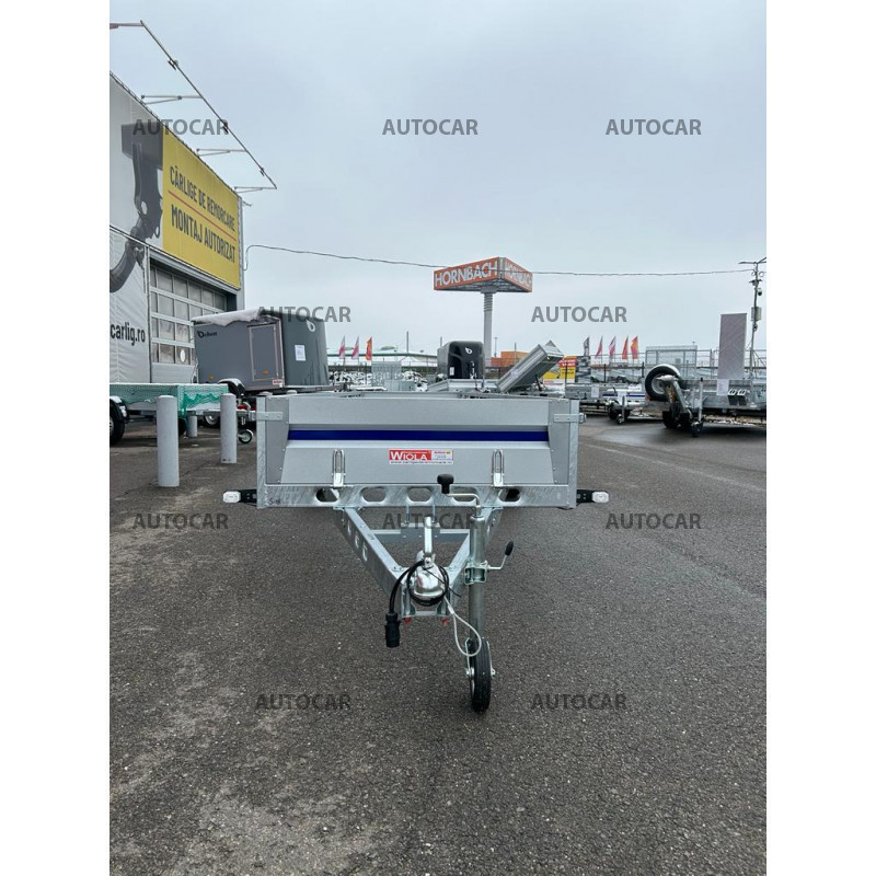Jednonápravový nákladný sklopný (na oji) valníkový vozík ,přičom se sklápa celá Úložná plocha a zadní čelo je vyplněné proglejkou. Na všestranné použití s kolami uloženými vedľa úložné plochy. Konštrukciu tvoří robustná žárově zinkovaná zvarovaná ocelová konstrukce, která zaručuje dlhoročnú životnost. Bočnice Jsou vyrobené z pozinkovaného plechu. V základní výbavě má: zadní a přední otváracie čelo, opěrné kolo z Držákom, gumová krytka přívěsového kloubu, zakladacie Klíny, podlahový úchyt 4x, Držák rezervy. Přívěs má záruk 2 roky a je konstruován na rychlost 130 km/h.
