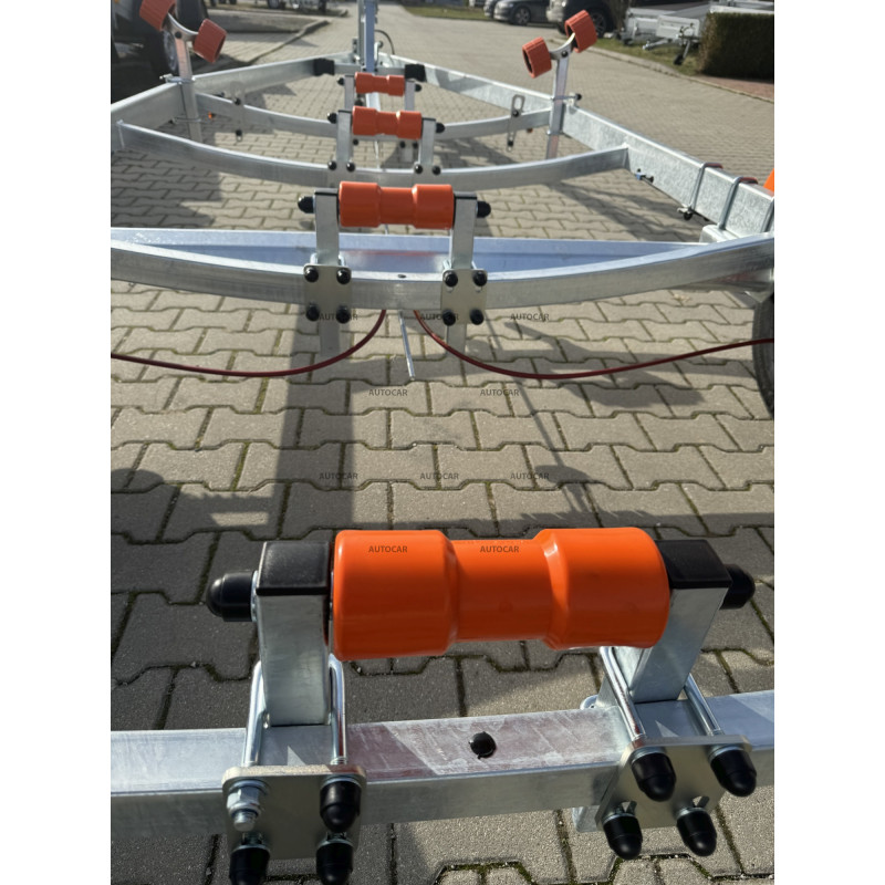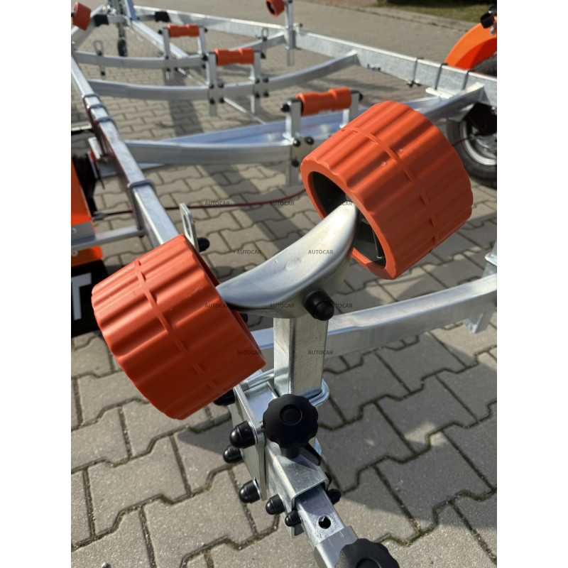 Jednonápravový břzděný přívěsný vozík určený pro převoz lodí o maximální délce 6000 mm. Ocelový rám vozíku je žárově pozinkován, což prodlužuje jeho životnost i při náročných podmínkách. V základní výbavě je kvalitní polohovatelný KNOTT naviják s navíjecím pásem , středové kýlové rolny 4ks, boční dvojité rolny 4ks, pryžový V doraz na špic lodě, automaticky sklopné opěrné kolo. Zadní světelnou rampa lze důmyslně odejmout , bez použití speciálního nářadí, díky čemuž je možné s přívěsem zacouvat přímo do vody a spustit loď / člun za pomoci navijáku. Náprava přívěsu je polohovatelná , aby se dalo lépe rozložit těžiště.