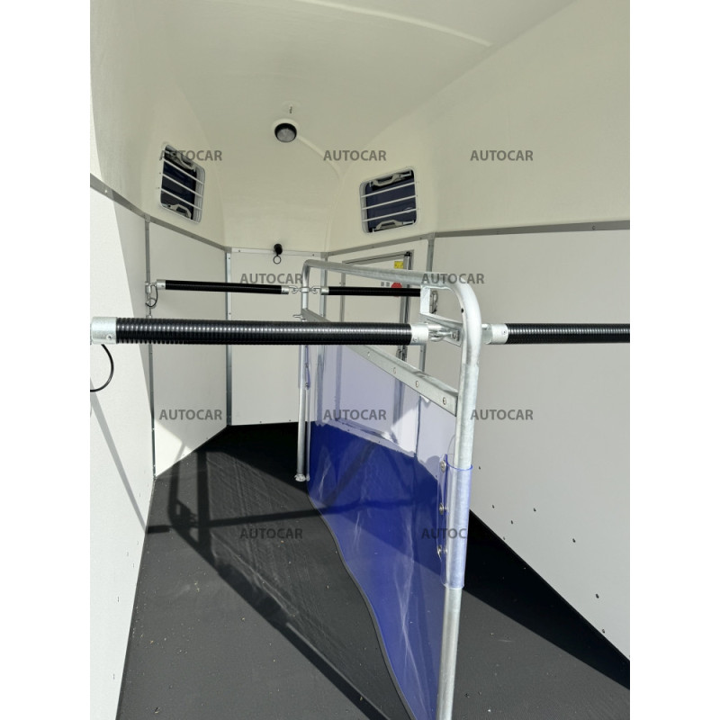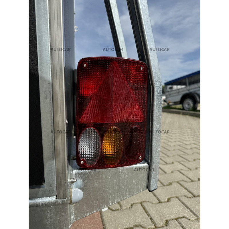 Žárově-zinkovaný rám, podvozek CFF-Plus s tlumiči pérování, podlaha přívěsu z odolné a vodotěsné překližky, stěny přívěsu z poplastované vodotěsné překližky v šedé barvě, střecha polyester-laminát v provedení stříbrná metalíza, zatónovaná okna, tónovaná okna samo-roletovací zadní plachta, gumová krytina na podlaze, gumová krytina na nakládací rampě, dělící středová příčka.