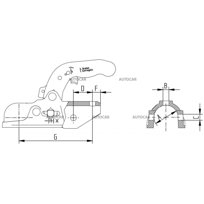 Přívěsný kloub značky Knott s nosností 2700 kg. Průměr uchycení přívěsného kloubu je 50 mm.