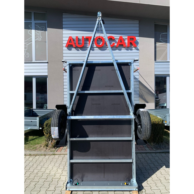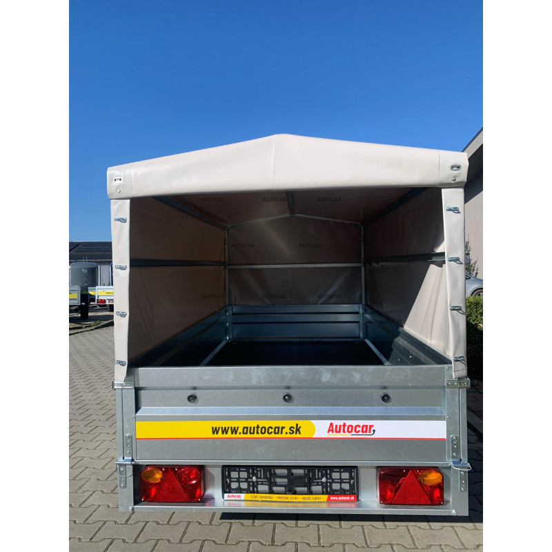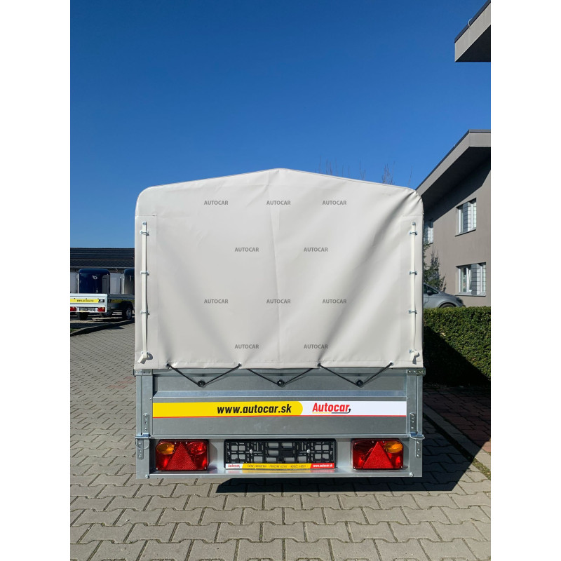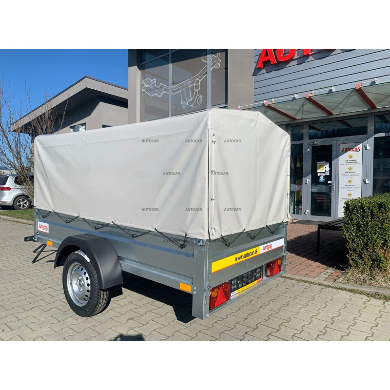 Jednonápravový nebrzděný přívěsný vozík s plachtovou nástavbou výšky 1200mm od podlahy přívěsu. Tento přívěsný vozík má celorámovou konstrukci výšky 6cm a se třemi příčnými výztuhami zajišťuje vysokou pevnost a stabilitu i při plném zatížení. Pro bezpečné uchycení nákladu jsou v podlaze umístěna čtyři kotvící oka. Vozík je vybaven silnými profilovanými bočnicemi vyrobenými z pozinkovaného plechu, což zaručuje dlouhou životnost a ochranu proti korozi. Zadní bočnice je otevíratelná a odnímatelná , což usnadňuje nakládání a vykládání zboží.