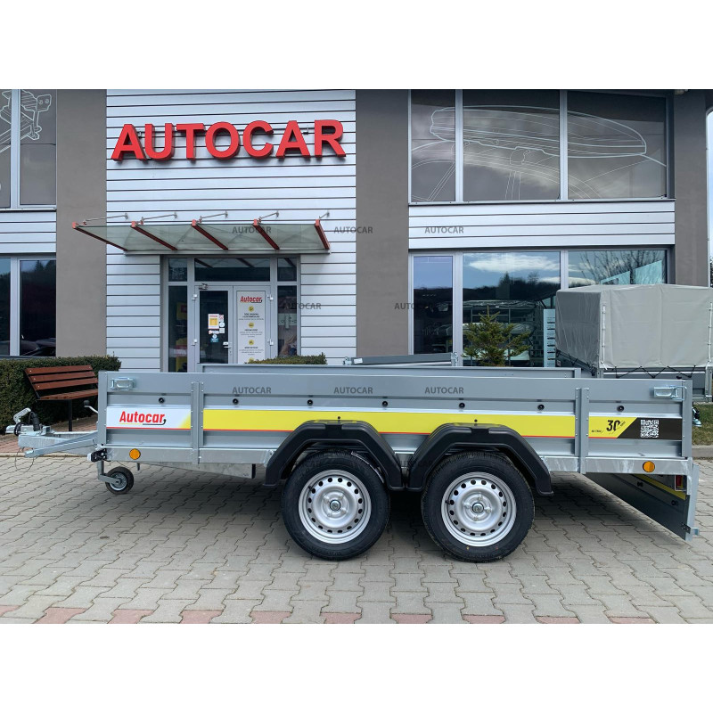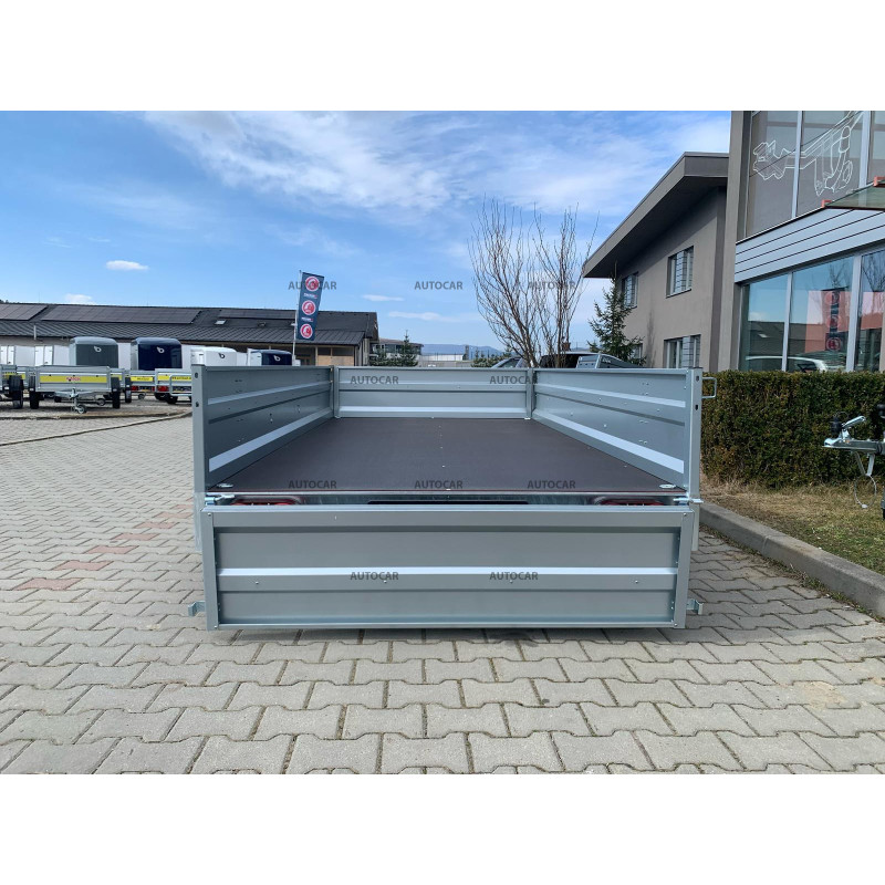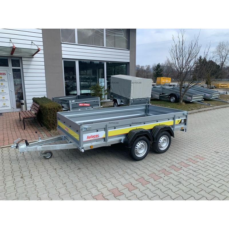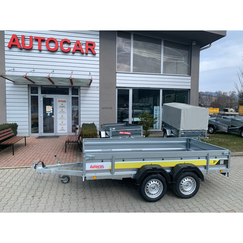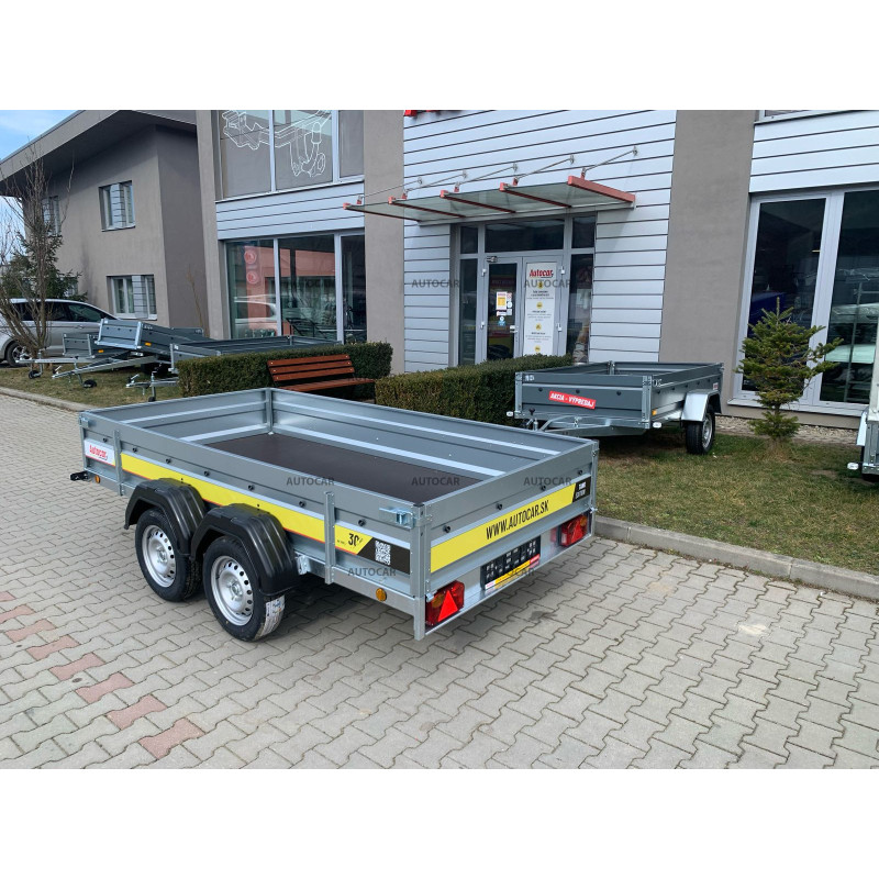 Dvounápravový nebrzděný přívěsný vozík s robustním svařovaný rámem výšky 8cm příčným vyztužením představuje spolehlivé řešení pro přepravu každého nákladu. Jeho rám U profilu a oje C profilu jsou vyrobeny z materiálu tlustého až 2,5mm. Přívěs má dvě nápravy s nosnost 750kg a přívěsový kloub s nosnost 1300kg. Jeho široká ložná plocha o rozměrech 3040 x 1560 a výšce bočnice 390mm, hlavní je však tloušťka bočnice až 1mm , které zaručují pevnost a odolnost. Tento vozík je vybaven voděodolnou překližkovou podlahou s podlahovými oky. Přívěs má také přední otevírací čelo a opěrné kolečko v ceně.