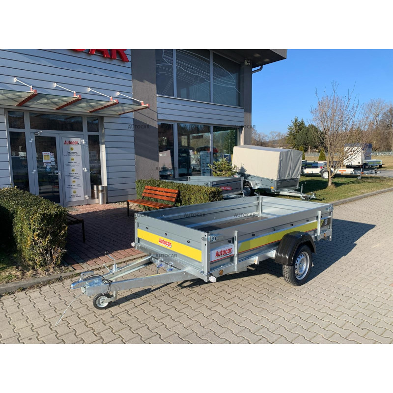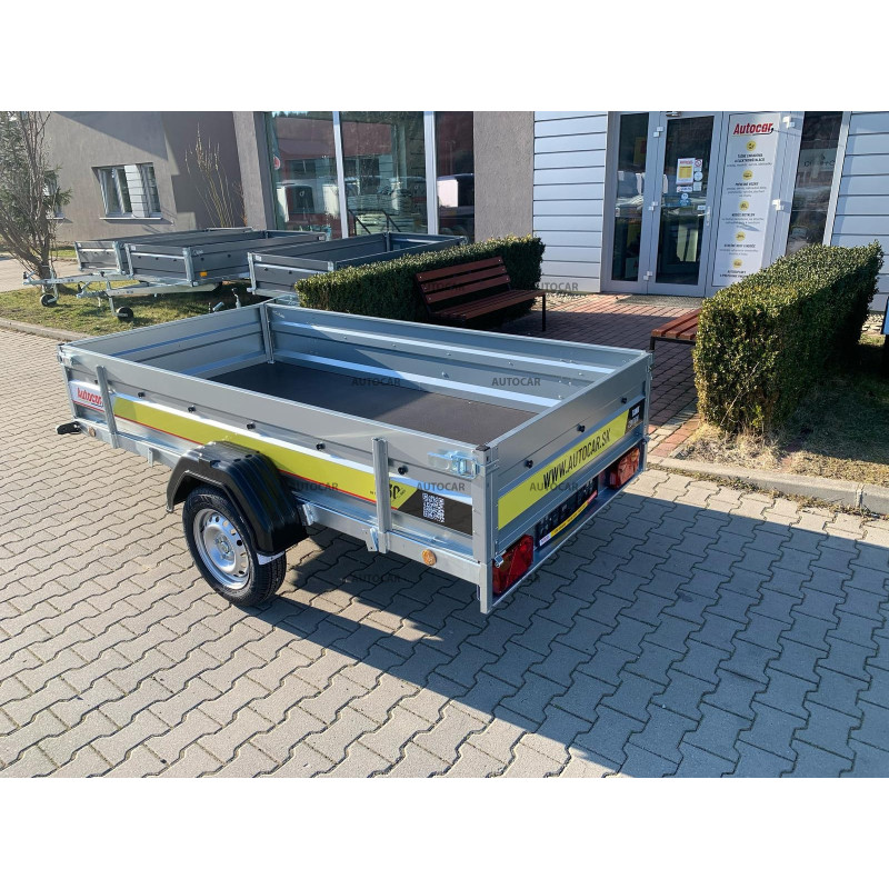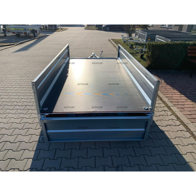 Sklopný jednonápravový nebrzděný přívěsný vozík s robustním svařovaný rámem výšky 8cm příčným vyztužením představuje spolehlivé řešení pro přepravu každého nákladu. Jeho rám U profilu a oje C profilu jsou vyrobeny z materiálu tlustého až 2,5mm. Přívěs má dvě nápravy s nosnost 750kg a přívěsový kloub s nosnost 1300kg. Jeho široká ložná plocha o rozměrech 2630 x 1330 a výšce bočnice 390mm, hlavní je však tloušťka bočnice až 1mm které zaručují pevnost a odolnost. Tento vozík je vybaven voděodolnou překližkovou podlahou s podlahovými oky. Sklopná konstrukce na oji výšky 8cm umožňuje snadné nakládání a vykládání nákladu, což činí tento přívěsný vozík vhodným pro různé přepravní potřeby. Kromě sklápění má přívěs také přední otevírací čelo a opěrné kolečko v ceně.