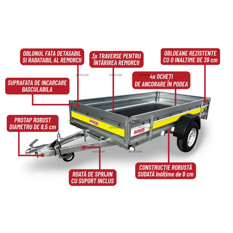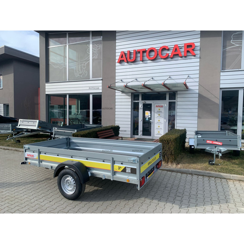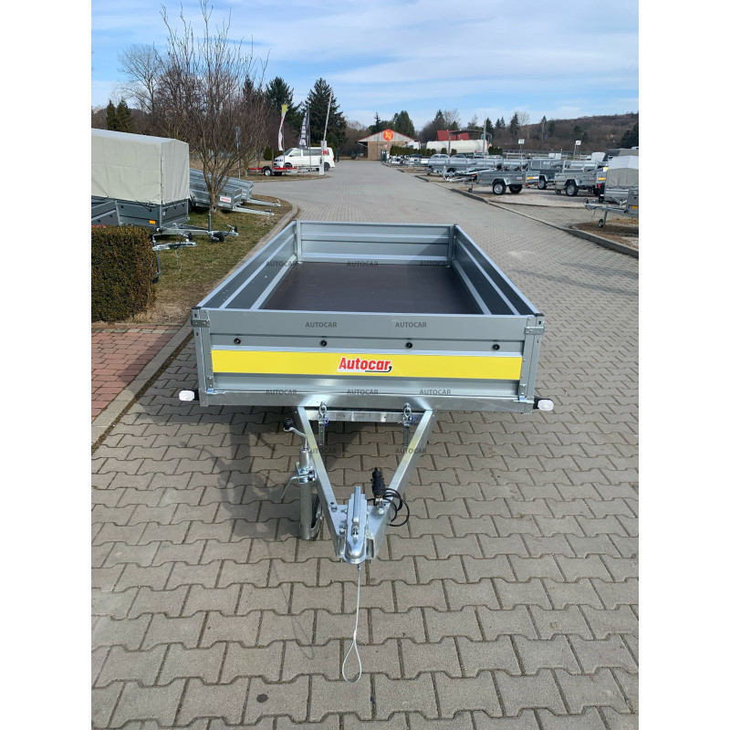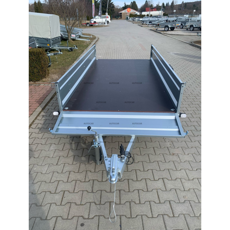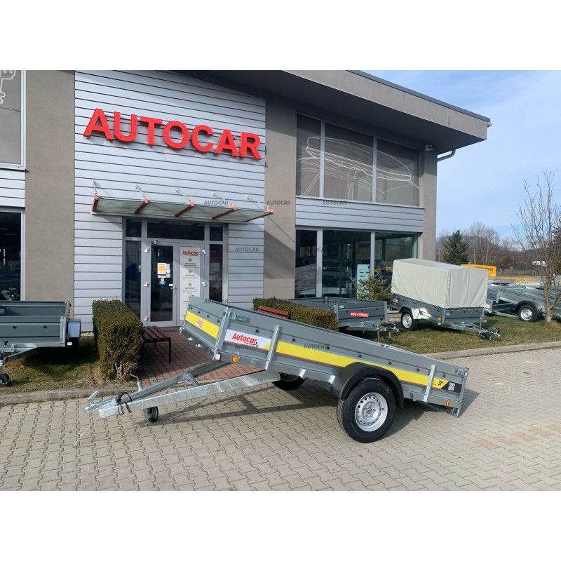 Sklopný jednonápravový nebrzděný přívěsný vozík s robustním svařovaný rámem výšky 8cm příčným vyztužením představuje spolehlivé řešení pro přepravu každého nákladu. Jeho rám U profilu a oje C profilu jsou vyrobeny z materiálu tlustého až 2,5mm. Přívěs má dvě nápravy s nosnost 750kg a přívěsový kloub s nosnost 1300kg. Jeho široká ložná plocha o rozměrech 2630 x 1330 a výšce bočnice 390mm, hlavní je však tloušťka bočnice až 1mm které zaručují pevnost a odolnost. Tento vozík je vybaven voděodolnou překližkovou podlahou s podlahovými oky. Sklopná konstrukce na oji výšky 8cm umožňuje snadné nakládání a vykládání nákladu, což činí tento přívěsný vozík vhodným pro různé přepravní potřeby. Kromě sklápění má přívěs také přední otevírací čelo a opěrné kolečko v ceně.