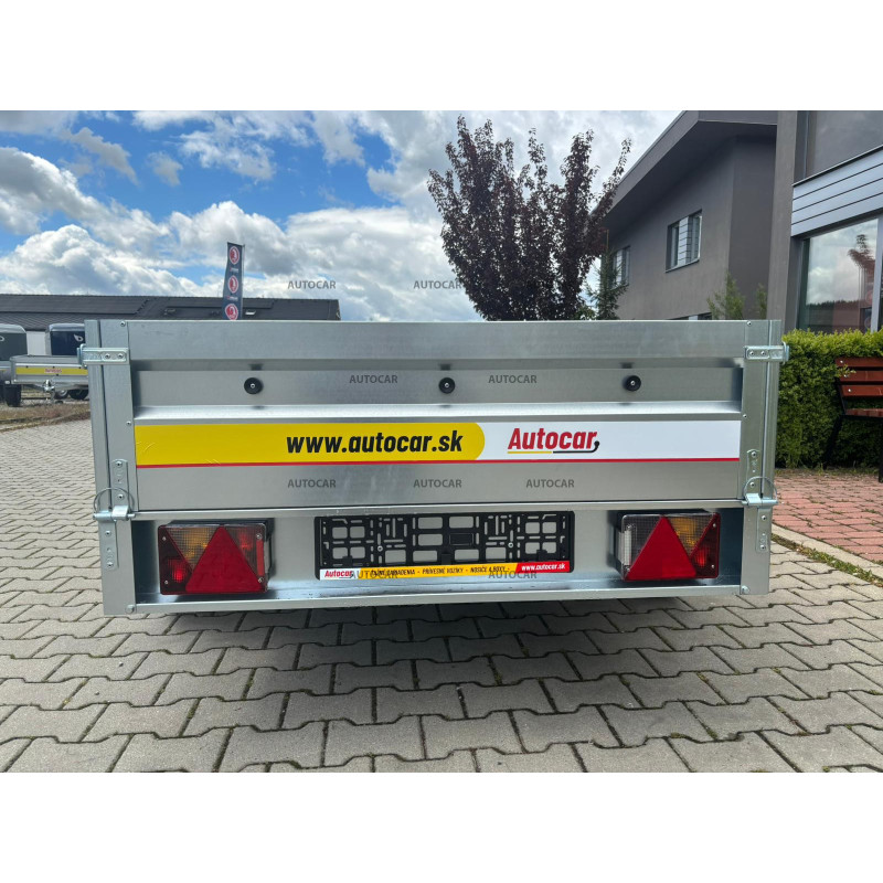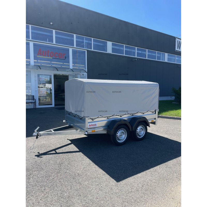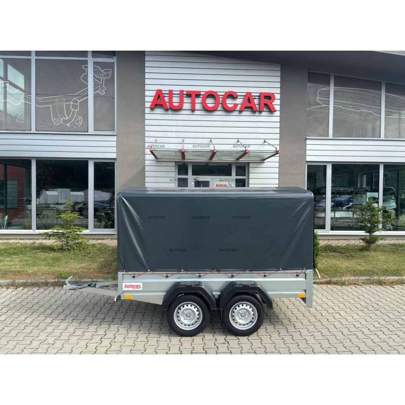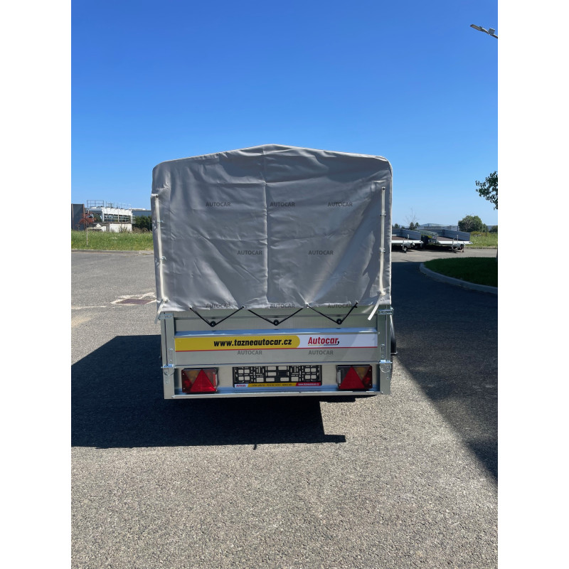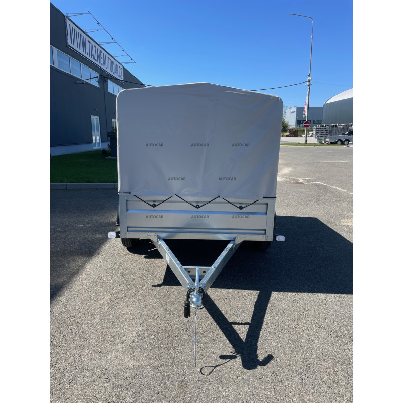 Dvounápravový nebrzděný přívěsný vozík s plachtou výšky 140cm od podlahy přívěsu as celorámovou konstrukcí o výšce 6cm a pět výztuh zajišťuje vysokou pevnost a stabilitu i při plném zatížení. Pro bezpečné uchycení nákladu jsou v podlaze umístěna čtyři kotvící oka. Vozík je vybaven silnými profilovanými bočnicemi vyrobenými z pozinkovaného plechu, což zaručuje dlouhou životnost a ochranu proti korozi. Zadní bočnice je otevíratelná a odnímatelná , což usnadňuje nakládání a vykládání zboží.