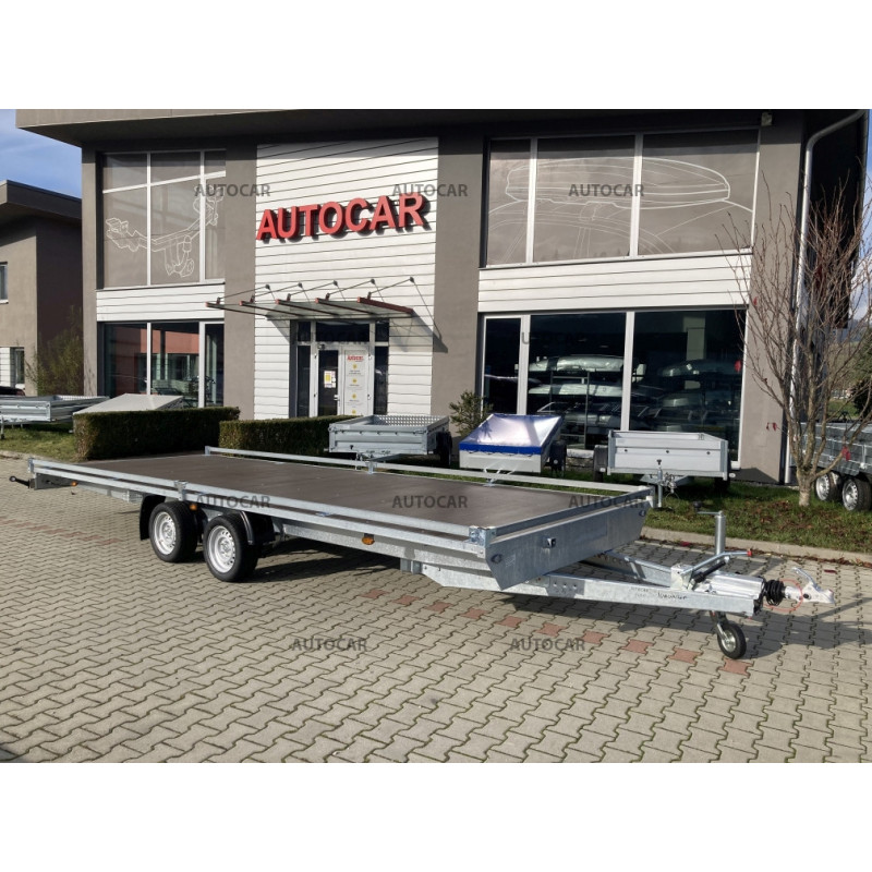 Dvounápravový nákladný vozík na přepravu automobilů s kolami uloženými pod úložnou plochou. Konštrukciu tvoří robustna žárově zinkovaná zvarovaná ocelová konstrukce, korá zaručuje dlhoročnú životnost. přívěs má záruk 2 roky a je konštruovaný na rychlost 100 km/h.