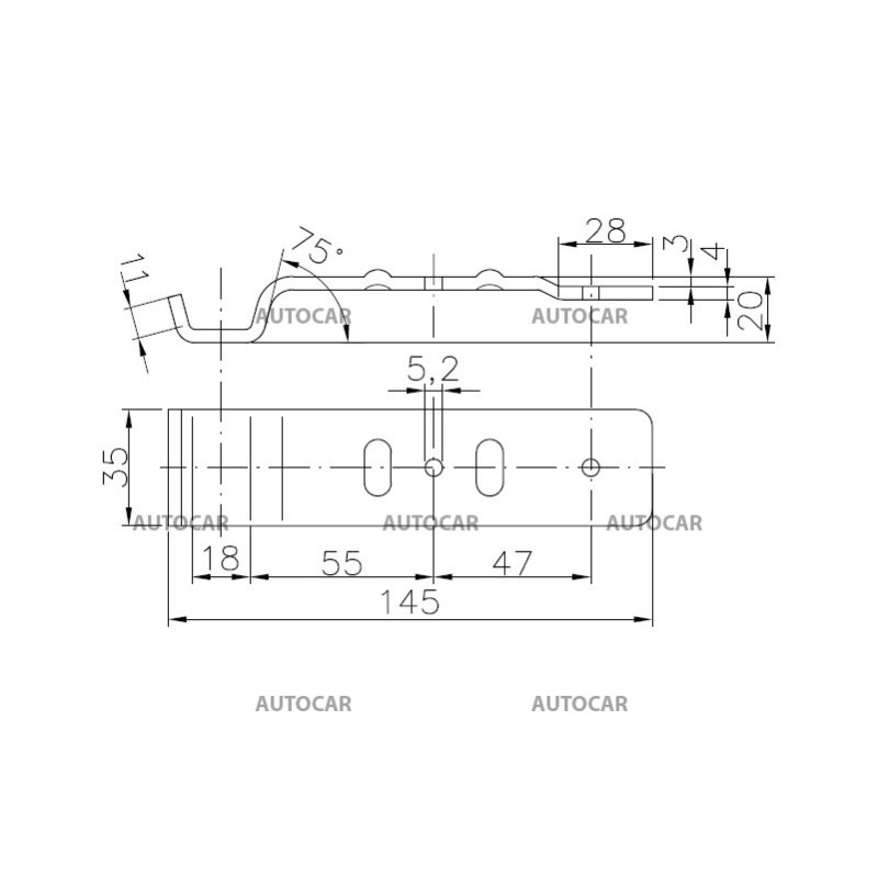 Protikus k uzávěru BVG 20-B, vyhnutý. Vyhnutí protikusu umožňuje jeho montáž na bočnice s lemováním nebo s odskokem.