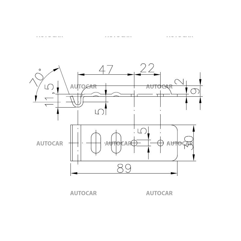 Protikus k uzávěru BVG 60-A. Vyhnutí protikusu umožňuje jeho montáž na bočnice .